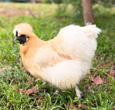 Dory is our hand-raised Silkie hen. Dory is friendly, and always curious about what food might be around.