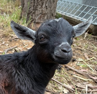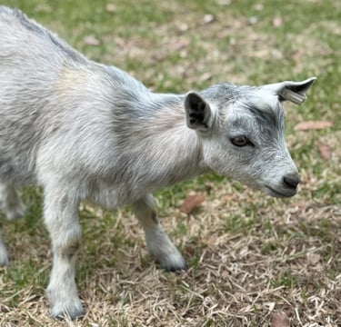 Indy is one of our twin pygmy goats and a curious, playful little character. She can be a bit shy at first but warms up quickly.
